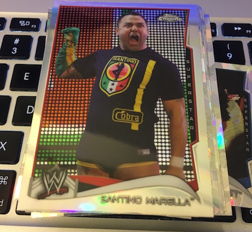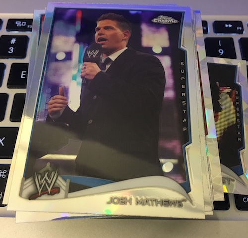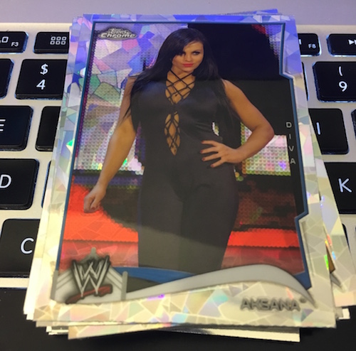 The packs: 2014 Topps Chrome WWE value packs (Walmart version)