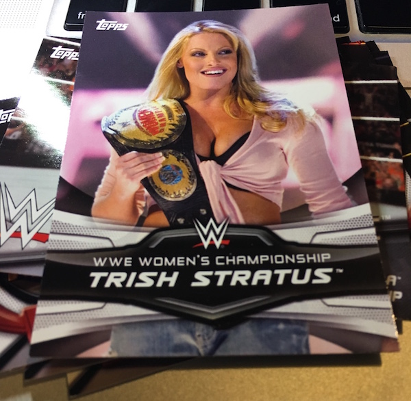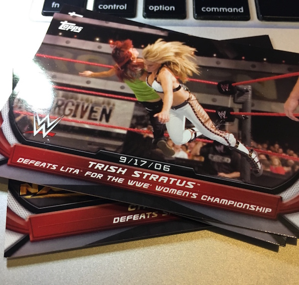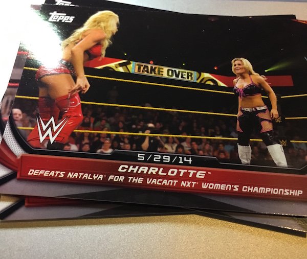 What's Buzz-worthy: When Topps unleashed these hit-per-pack, retail-only blasters upon collectors a few years ago it was the first women's only set in more than a decade. This box delivered pretty well with a rarer hit and a parallel of a basic card but these boxes can deliver plenty more. How? Big names from the past and present, Kiss Cards and autographs. ... This release tells the story of how the WWE’s women’s division got to where it is today and nearly all of the notable names are found here (save for Sable, Mickie James, The Fabulous Moolah and Mae Young) making this one of the better women’s sets for WWE. … About the only drawback here would be the jumbo pack packaging that led to some soft corners (super-skinny stock) and dings as those packed were wedged into a blaster box. Parallels that are Silver, Pink, Gold and Red across all of the hits and the base cards add to the chase here in this brand that was heavily busted -- I happened to find a pair of these out of the blue at regular price and pounced. I'm not sure the typical results justify paying a premium price but the big stuff possible here can easily pay for a box and some.