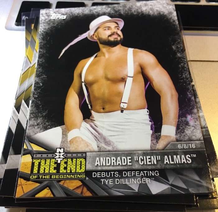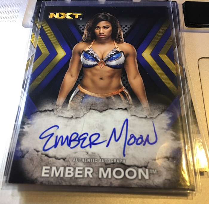 Card That Stole The Show: It's a tough call here but it comes down to the autos of Asuka, Almas and Moon. I think Moon is perhaps the bigger auto here over time, but she's out with an injury. I'll make it Almas in the here and now since I've found Asuka ink more than a few times and this one is a rarer parallel card. (And I almost missed that point.)