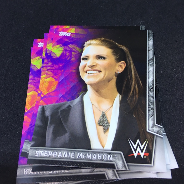 Notables on base cards: Charlotte Flair, Sasha Banks, Kairi Sane, Shayna Baszler, Mandy Rose, Nia Jax, Stephanie McMahon, Bayley, Kayla Braxton, Renee Young, Carmella, Maryse, Bianca Belair