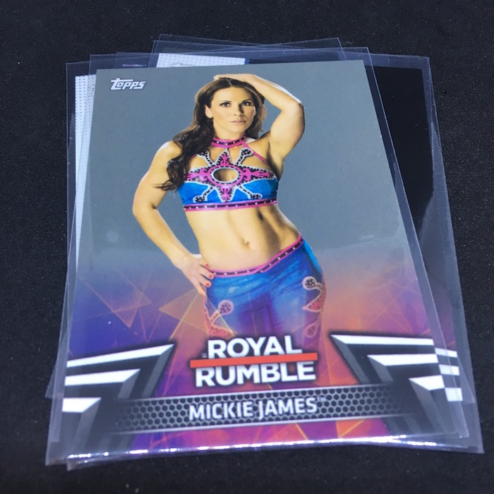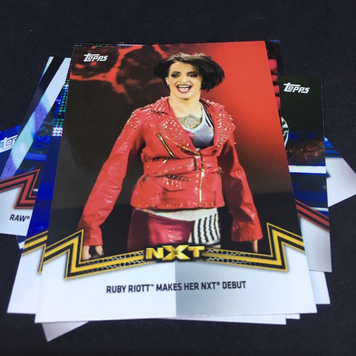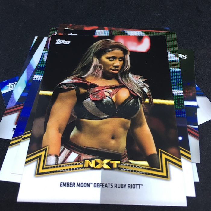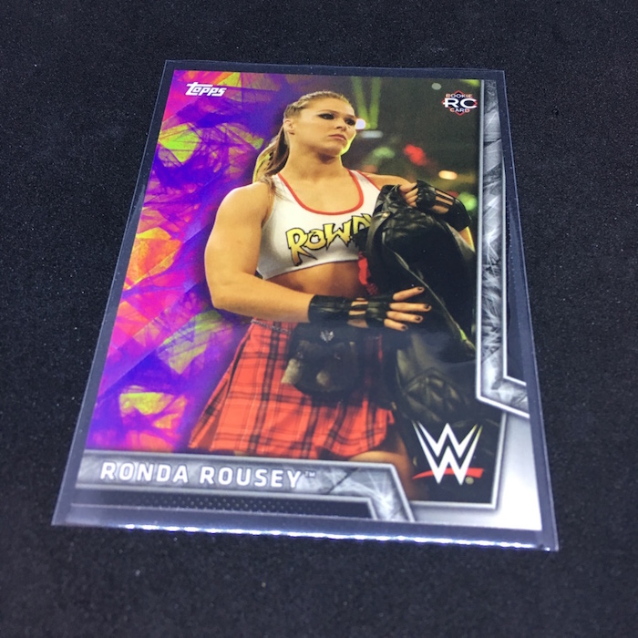 What's Buzz-worthy: This release was a big go-to for me in the past, so I had to have it somewhere in this marathon -- though it wasn't a great box this time. Hobby is your best bet here with the biggest inclusion being Ronda Rousey Rookie Cards and, more importantly, her first WWE autographs. (Could she be back at Mania? We'll see.) ... Hobby boxes guarantee an autograph and a second hit every time -- link above -- but ink does flow from these boxes somewhat regularly, too. The base set feels dramatically improved here vs. previous years and it was relatively strong before this one. ... A small base set means you'll land any particular base card in roughly every other box. A big highlight in these are the super-cheap but crisp and clean Royal Rumble inserts that mostly show competitors making their entrances or in action at that first-time event. (Some have studio shots but most are from the event.) They are a simple inclusion that add more to the overall package.