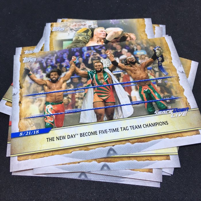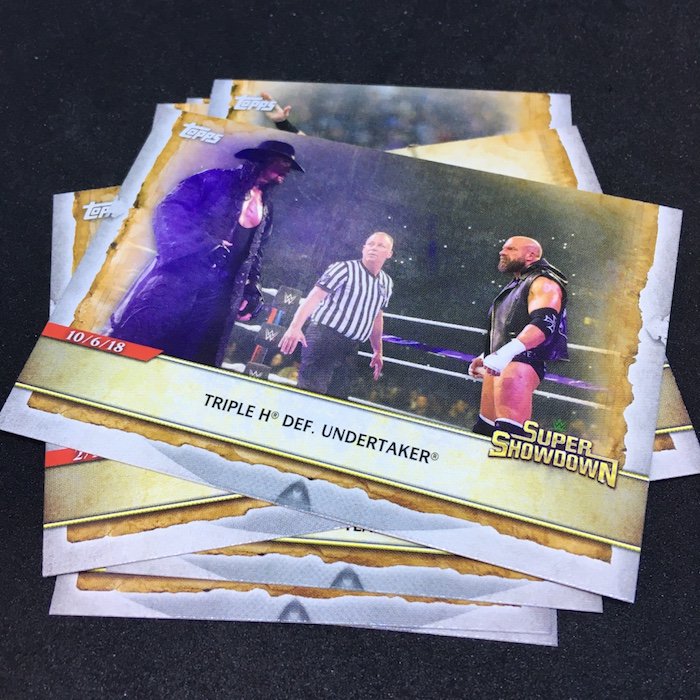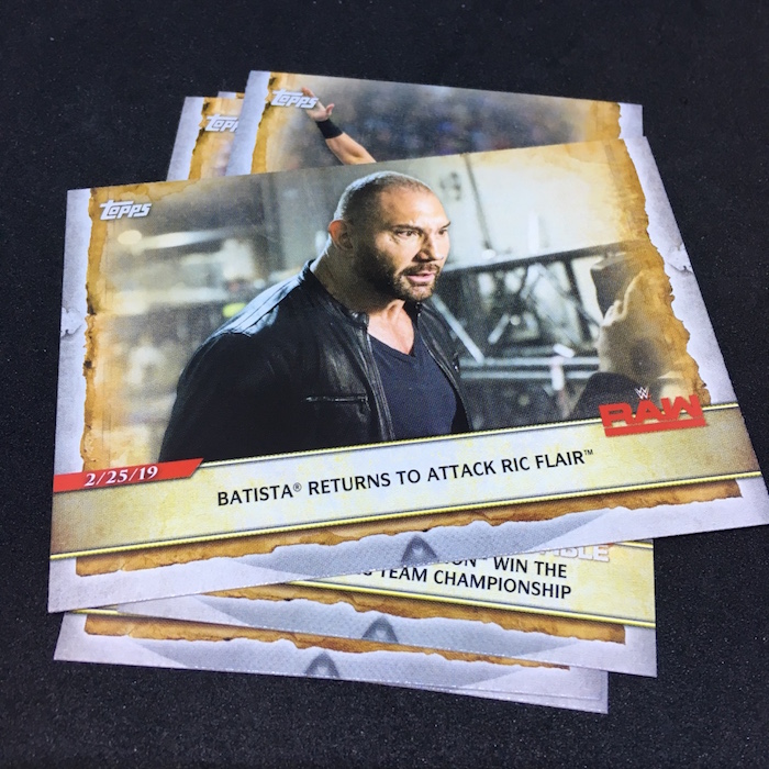 Notables on base cards – Undertaker, Daniel Bryan, D-Generation X, Kane, The New Day, Seth Rollins, Brock Lesnar, Roman Reigns, Drew McIntyre, A.J. Styles, Batista, Triple H, Shane McMahon, Randy Orton, Kurt Angle, Finn Balor, Shinsuke Nakamura, Braun Strowman, Elias, R-Truth, Rey Mysterio ... among others.