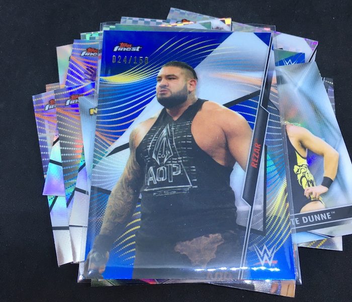 The boxes: 2020 Topps Finest WWE wrestling cards (three blasters)