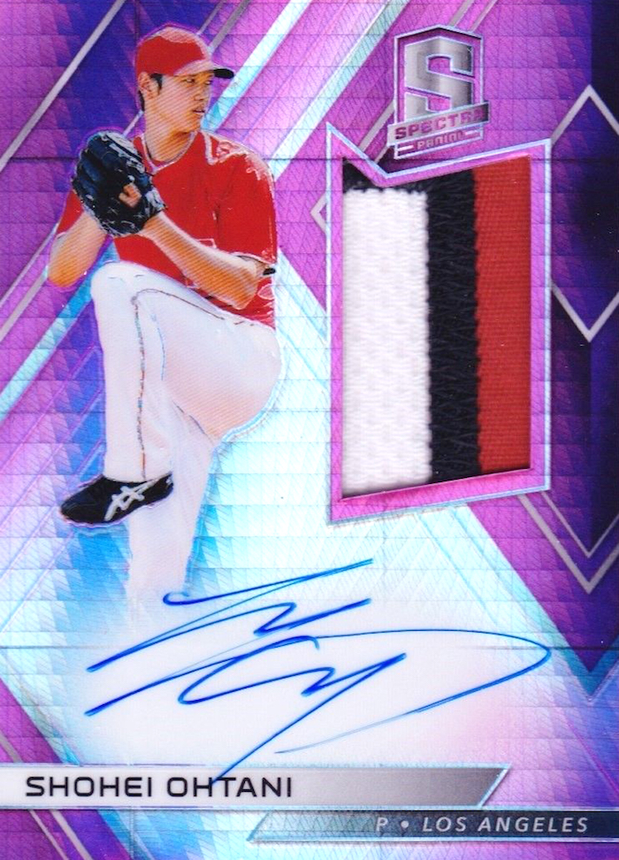 The Card: Shohei Ohtani Spectra Rookie Jersey Autographs Neon Pink (/49)