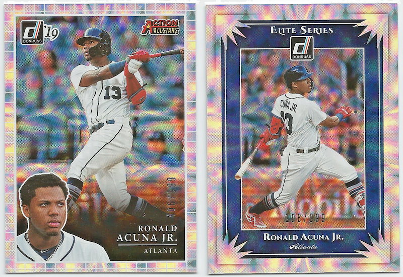 The Cards: Ronald Acuña Jr. 2019 Donruss Action All-Stars and Elite Series inserts (/999)
