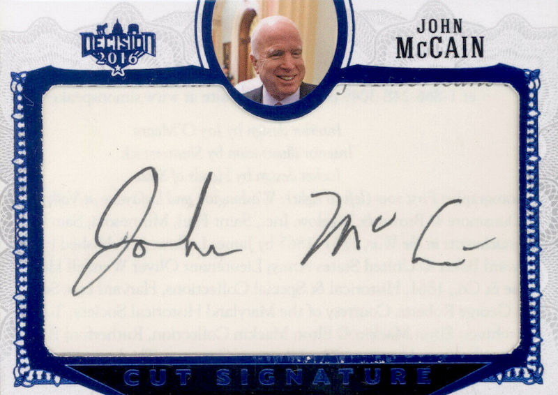 Why it’s Buzz-worthy: McCain's autograph can likely be found cheaper than this with some looking, but this partilar pick is not ultimately my main point here. There are a ton of notable and expensive autographs to be found in Decision 2016 boxes with some you might know being $1,000 cards -- check out completed ebay sales here. I have yet to rip a single pack of the brand but have contemplated it many times. The release is a landmark one and big things are possible. It's a messy time in Washington D.C. and you can find many of those players and many others in these packs ... so that's why I present this one here.