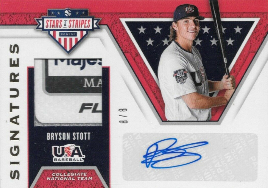 Buzz’s card take: His cardboard presence so far is thanks to USA cards in EEE last year and in this year's Stars & Stripes release -- and that one has about three times as many autos as the EEE set. He was the 14th pick in this year's draft so he's a prime candidate to be found in prospect releases the rest of this year. He hit .340 with 15 homers and 97 RBI in 171 college games -- not overwhelming numbers but not awful ones, either, for UNLV.