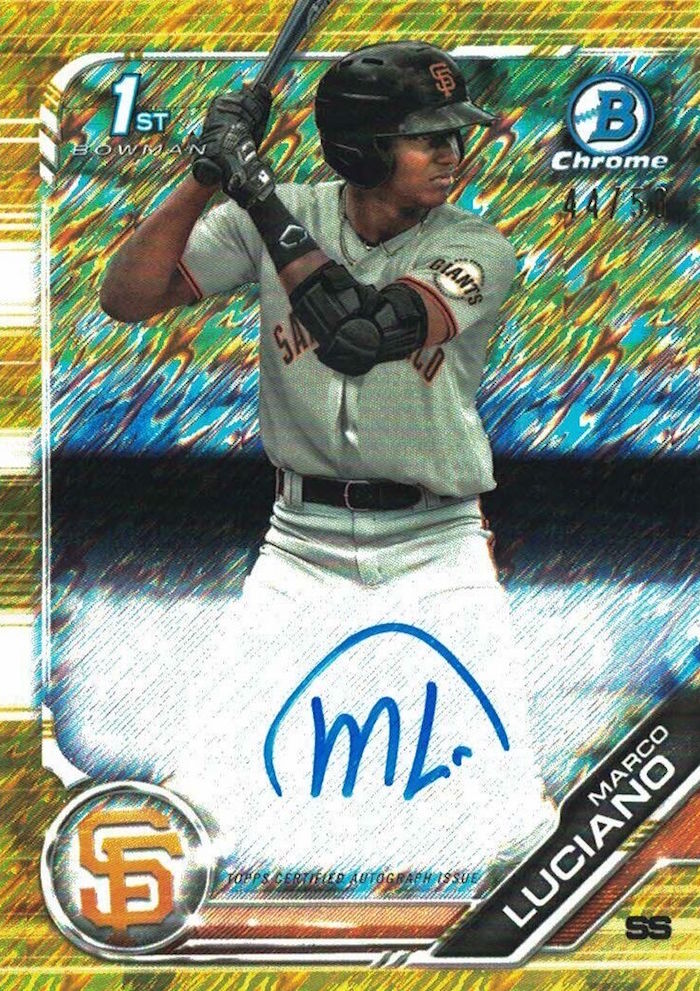 Buzz’s card take: Bichette happens. Again. He's the second son of former Colorado Rockies slugger Dante Bichette to make a push toward MLB and Bo is at the highest level so far. Read the blurb above and you should know the hype is there -- but the stats are, too. In 305 MiLB games (four seasons), he's hit .329 with 24 homers and 210 RBI while also adding 70 stolen bases. He's hitting .335 this year. He's got a relatively low volume of autographed cards vs. his overall card total so that could be promising when it comes time to sell if you've been stashing them. He's also had very few autos from Topps since 2016.