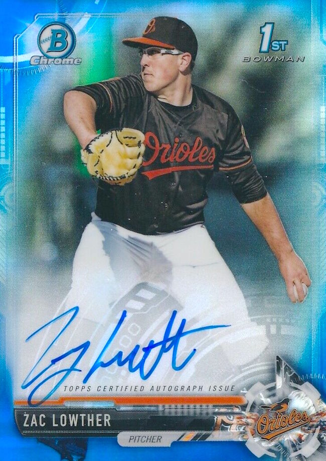 Buzz’s card take: More than a third of his cards are autos so that's good, but his total is ridiculously low. The two products above are the only places to find his autos. This second-round pick from Xavier looks really good this season though his three-year total is 23-13 with a 2.26 ERA and 380s strikeouts in 326 innings. The obvious question one must ask? When's the last time an Orioles pitcher was heavily chased on cardboard and delivered?