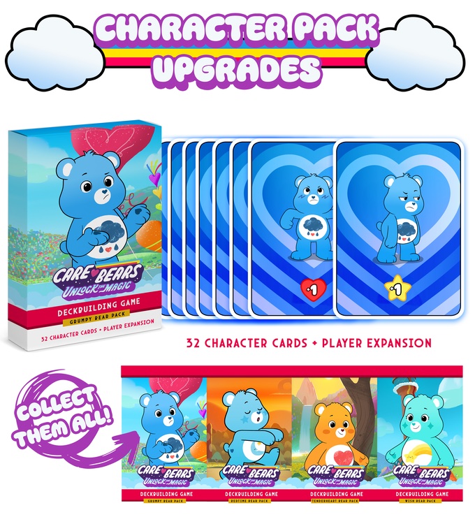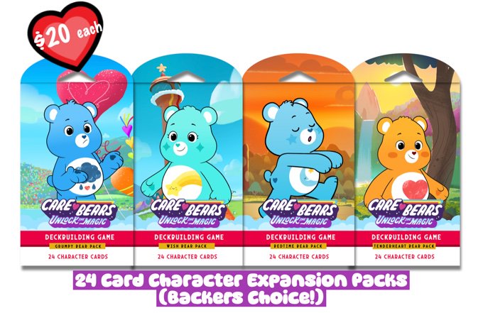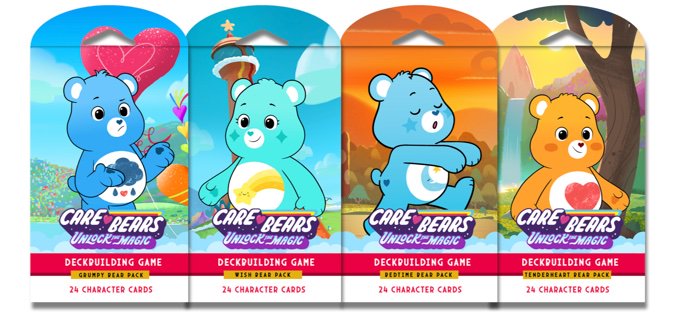 Also in this one will be 24-card Character expansion packs with cards all focused on one particular Care Bear (four options), sleeves, binders and playmats for starters -- see all below along with the various tiers, features and options.