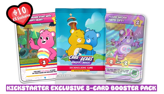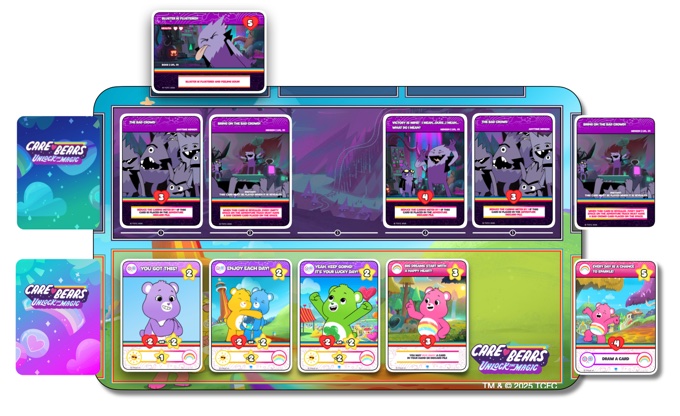 Naftos and Zoop Games are behind the Care Bears: Unlock The Magic - The Deckbuilding Game with pledges topping $48,000 so far via more than 300 backers after having a goal of only $10,000 when it launched -- there are only a few days left to grab some premium pieces such as an uncut sheet or other pack formats for this exclusive release.