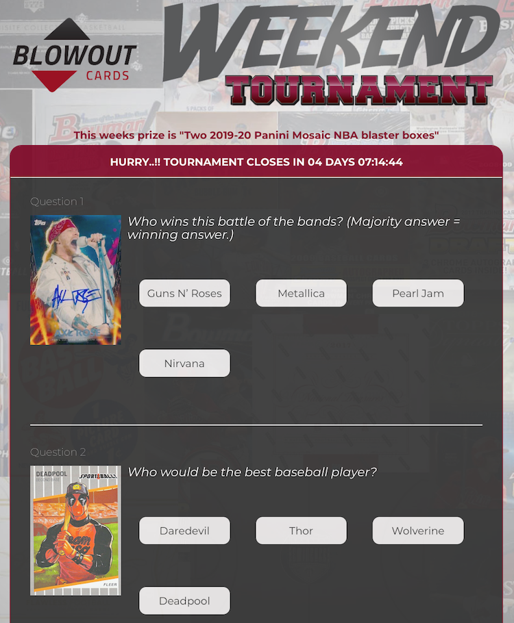 Did you get in on last week's action? Check the leaderboard and contact fish@blowoutcards.com to claim your prize if you're the winner.