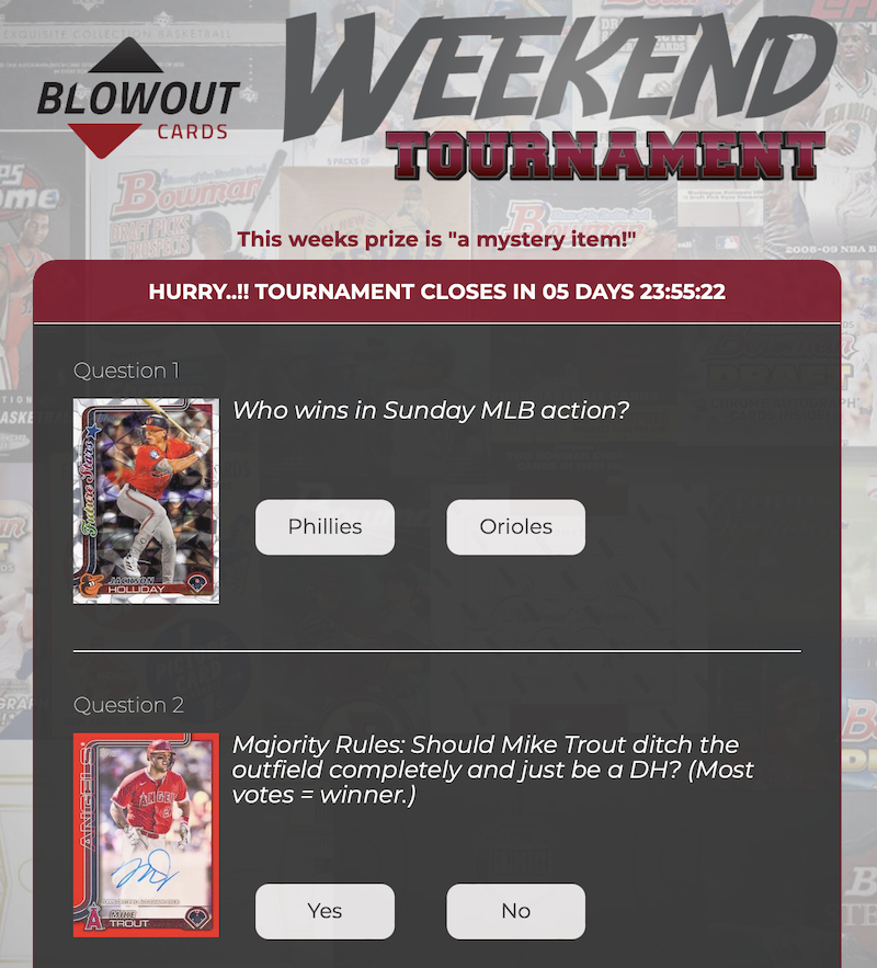 Did you get in on last week's action? Check the leaderboard and contact fish@blowoutcards.com to claim your prize if you're the winner.
