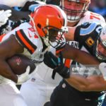 I managed to find a sequence of photos from the game showing Chubb carrying this exact same ball while stiff-arming Panthers captain Luke Kuechly as he fought for yardage during a play in the first quarter. The Getty Images photos seen here show that company's codes so you can go verify them -- and so you can't just scream "Photoshop!" You might want to do that since these images are almost comical in how they showcase the ball numbering so well. Something else that helps these photos make the ball even better? Both of these rookies were record-setters -- Chubb the team's leading rookie rusher ever (996 yards) and Mayfield the NFL's leading rookie passer of all time (27 TDs), despite only playing in only 14 games. (The records happened later in the month, of course, not this game ... but I'll still take it.)