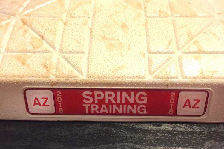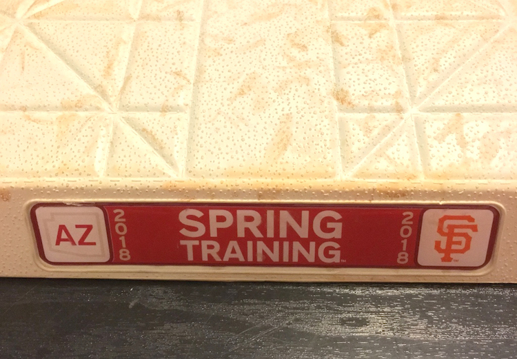Game-used base (MLB Authenticated): Milwaukee Brewers vs. San Francisco Giants, Feb. 23, 2018 (Scottsdale Stadium, Scottsdale, Ariz.)