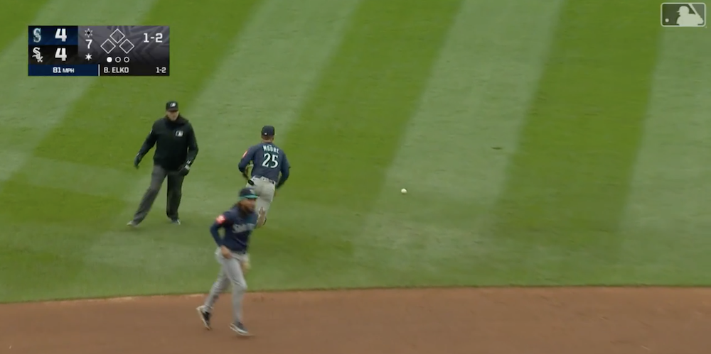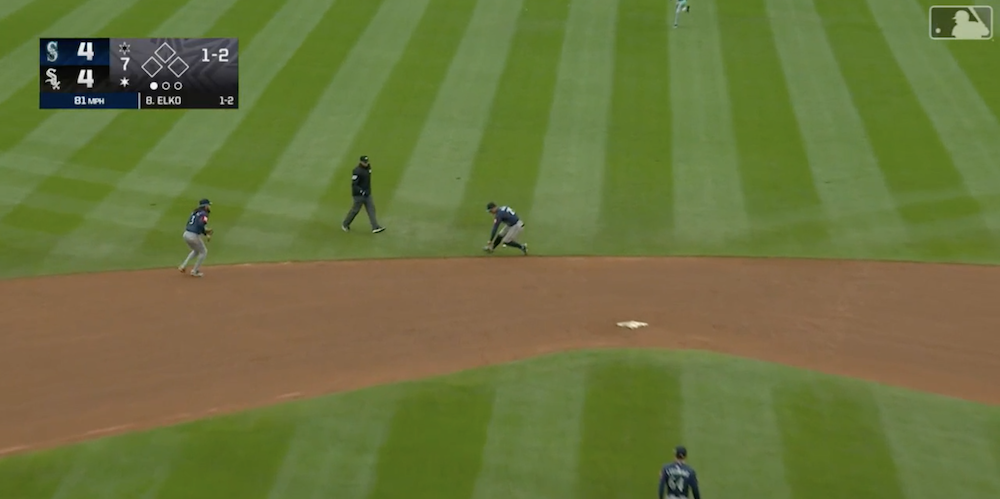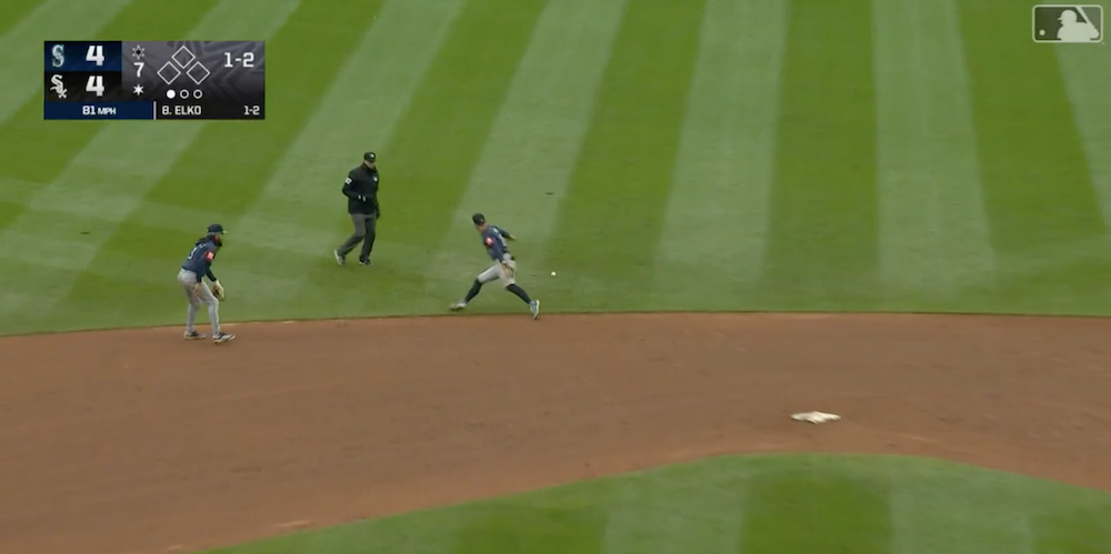 The results: A fastball for a ball, two sweepers for called strikes -- all handled by Mariners C Cal Raleigh -- before Elko hit it up the middle and reached base on an error by Mariners 2B Dylan Moore