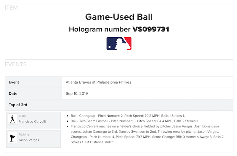 Game-used ball (MLB Authenticated): Braves vs. Phillies, Sept. 10, 2019
