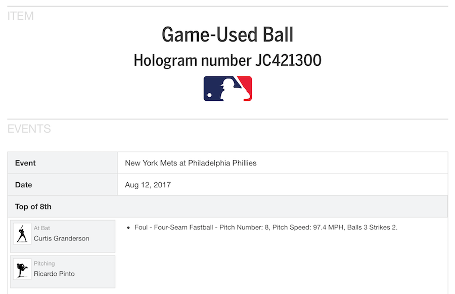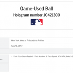 Game-used baseball (MLB Authenticated): New York Mets vs. Philadelphia Phillies, Aug. 12, 2017