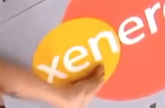 What's Buzz-worthy: These cards aren't all that pricey -- I got this one for this future Hall of Famer for just over $2 -- but the swatch got my attention as it seemed like it could be easily spotted as it was a piece from the mat for the event where it's noted. While I initially thought "MasterCard" based on the colors, it turns out the logo is for xenergy energy drinks from a company called XYIENCE. The convergence of the three colors in such a tight space (a swatch about two inches wide) makes it pretty obvious that the piece is from the top of the "n" in the logo (rotated 90 degrees to the right on the card) with the curve to the white atop the canvas. (Or, it could be the bottom of the "n" on the right ... maybe. I'm going with the top.) You can see the logo extensively as fighting from the first round alone from this St-Pierre win took place right on top of the logo -- check out the video and especially the secondary image below. The best part of this card? It came from a low-end product that's a favorite of mine as it delivers five hits per box and a boatload of cards for a very modest price. Mat cards are pretty common stuff but not many of them can match up to specific spots so easily. The only drawback on this card? There is a second identical xenergy logo on the opposite side of the Octagon for that event that you don't see much of in the video. I'm sure my swatch is the one that has toe-use on it, though -- watch the clip. (That's me being optimistic.)