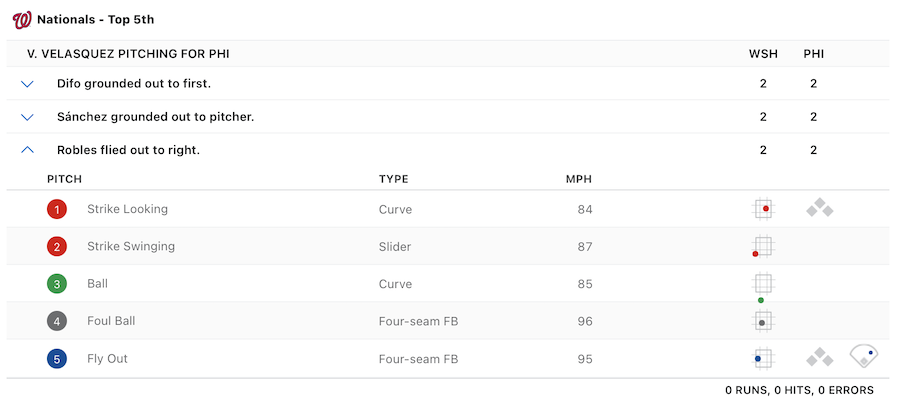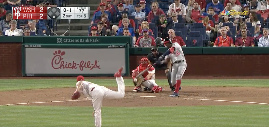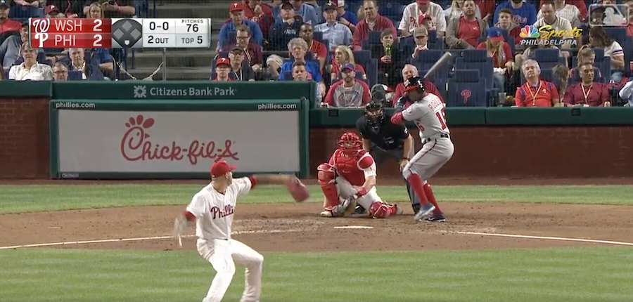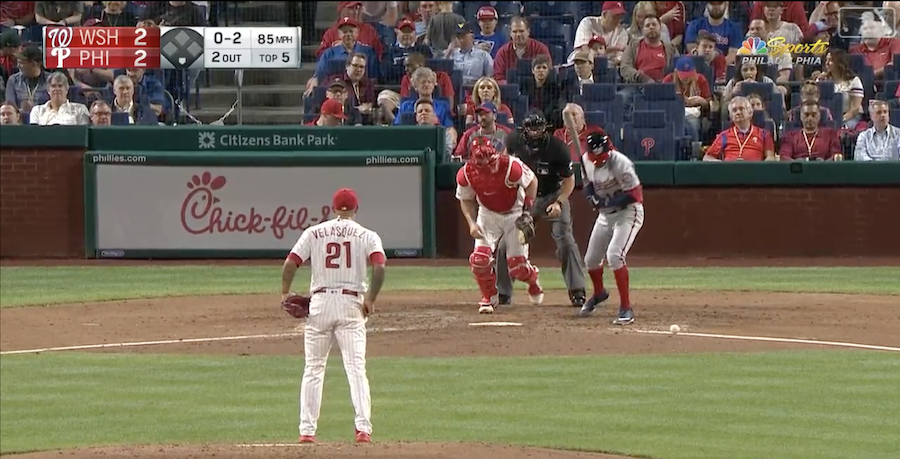 The result: Three pitches -- two strikes, one ball -- during a fifth-inning at-bat as part of a 4-3 Phillies win.