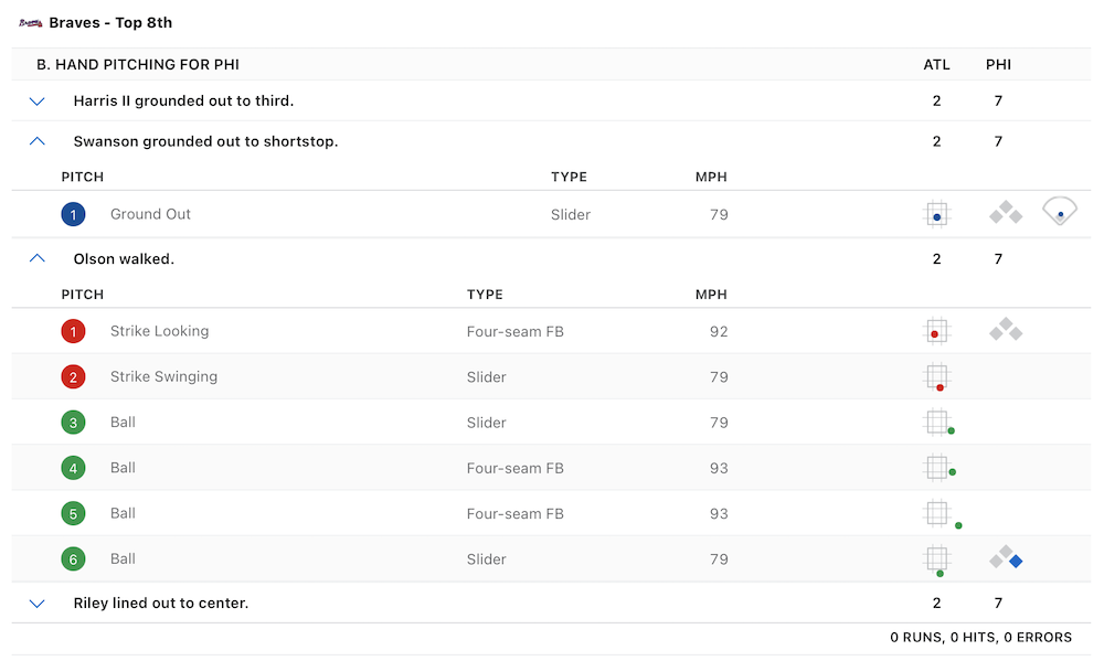 The matchup: Phillies RP Brad Hand vs. Braves SS Dansby Swanson -- and also vs. Braves 1B Matt Olson