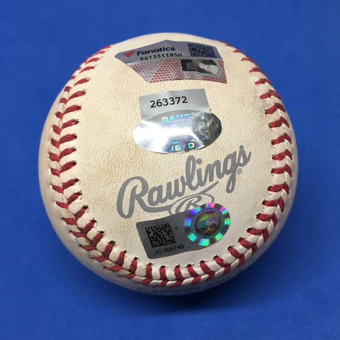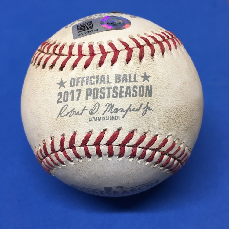 This month's ball in the Collecting Game-used series is the second of two I landed not knowing who would be attached, just knowing that they were from a certain date in the postseason's past with the teams known -- and in this case it's from a pair of teammates now with the New York Mets and a pair of All-Stars. How did they sit all these years since they're from back in 2017? Well, based on holograms, they were originally in Steiner Sports' hands after going through MLB Authentication and then into Fanatics' possession.