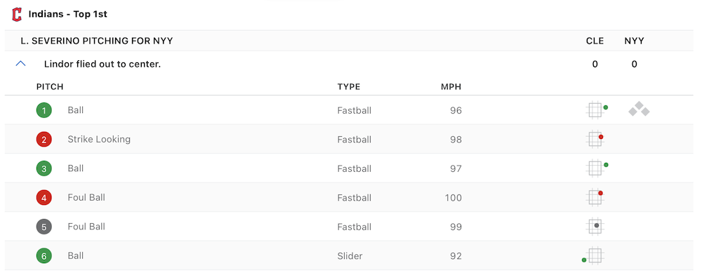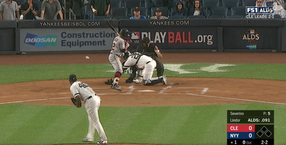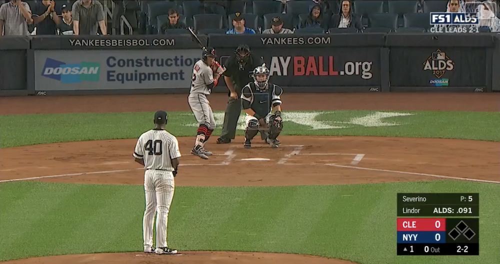 The matchup: Yankees SP Luis Severino vs. Indians SS Francisco Lindor in the first inning of a 7-3 Yankees victory.