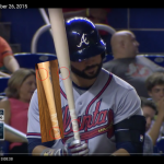 The match-ups: Braves at Mets, Sept. 23, 2015 (in dugout) and Braves at Marlins Sept. 26-27, 2015, confirmed at the plate (Others are possible but I didn't research further after these matches.)