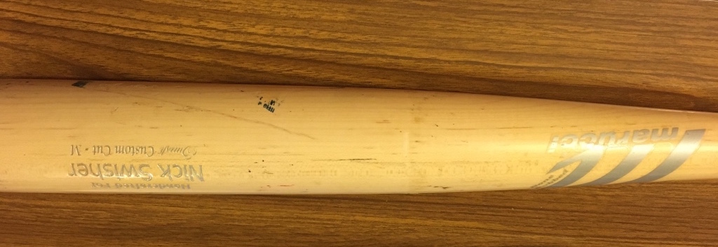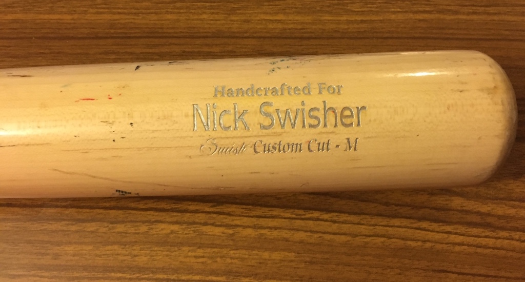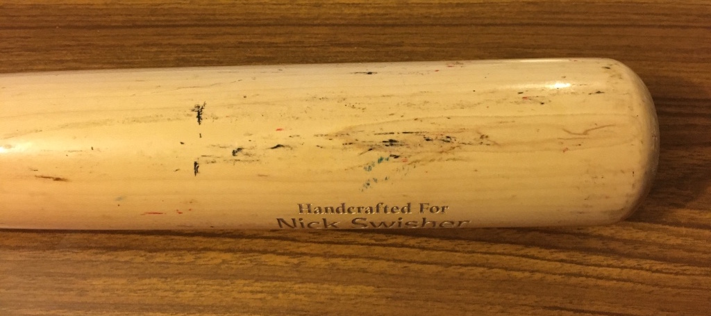 What am I talking about? Picking off game-used baseball bats for the retired player I collect, Nick Swisher, and in this case it's another 100-percent game-used and photo-matched piece -- but one without an MLB Authentication sticker. (Here's last time and here's the first one.)