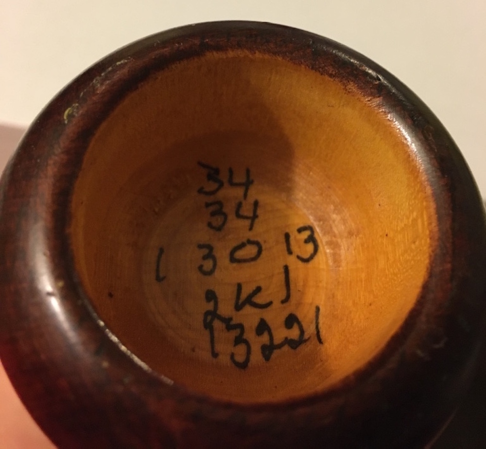 What's Buzz-worthy: The codes hand-written on the top of each Sam Bat are helpful for authentication purposes. It looks like it was ordered/made on Jan. 30, 2013, so that's a starting point for trying to photo-match. (The 34s are ounces and inches and 2K1 matches the model noted in the barrel.) The 13221 is the only number I couldn't figure out but I asked the Sam Bat social media person about it and it turns out that's their order number. "It is definitely an authentic bat," they previously told me when I landed this and just this morning I was told that this bat was among just 12 Swisher ordered with these specs. So ... it's a pretty unique piece compared to many bats in his career. (At this point, after adding this one, I have something from nearly every bat-maker he used in his career ... and he tried a lot of them with a lot of color combos and sizes.)