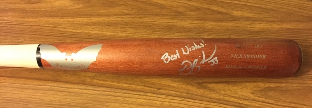 Game-used bat (not MLB Authenticated): 2013 Nick Swisher Sam Bat Maple 2K1 Rideau Crusher
