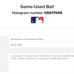 Game-used ball (MLB Authenticated): Atlanta Braves vs. Philadelphia Phllies, Sept. 12, 2019