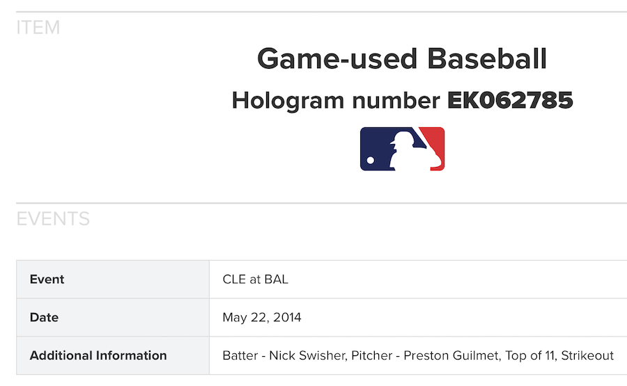 Game-used ball (MLB Authenticated): Cleveland vs. Baltimore -- May 22, 2014