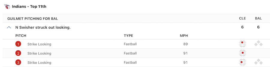 The result: Strikeout in 11th inning