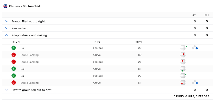 The result: A ball to finish off a walk to Kim, four pitches (two balls, two strikes) to Knapp -- the last being a curveball in the dirt.