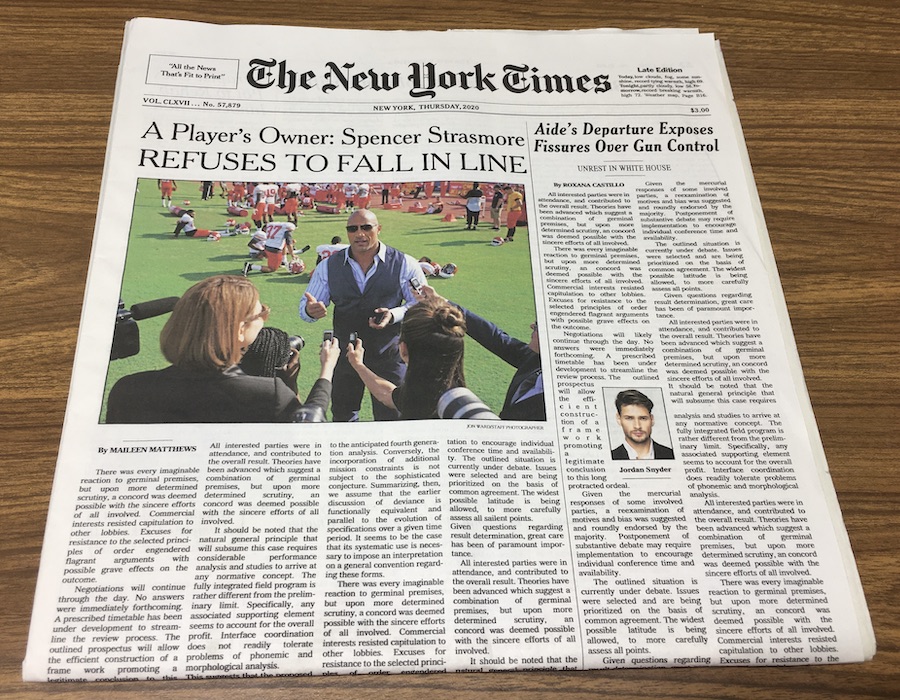 Screen-prepared prop: Spencer Strasmore on the cover of The New York Times
