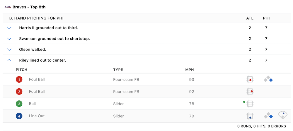 While last month's piece was a little more in-depth in terms of how long the ball survived in the majors -- two batters -- this one is more traditional but from the guy who followed them in the Braves lineup. That was something I didn't even realize until I sat down to put this one together. Landing all of the baseballs used in an inning is probably an impossibility unless it's all one ball or if you're at a game and can pick them up in-person, but this was a fun discovery with good names attached.