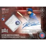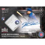 - ON-CARD AUTO RELIC # TO 25 – KYLE SCHWARBER COMEBACK JOURNEY HELPS CUBS TIE WORLD SERIES – TOPPS NOW $349.99