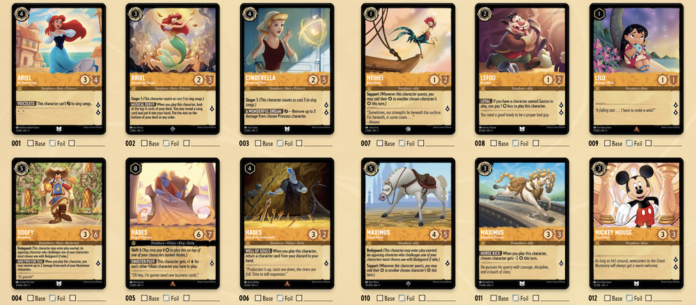 Each 12-card pack here includes six Common cards, three Uncommon cards and two cards from either the Rare, Super Rare or Legendary tiers and the one Foil card from a random level, according to Ravensburger.