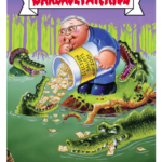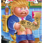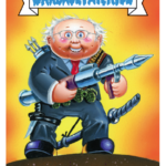 The 2016 Topps Garbage Kids: American As Apple Pie In Your Face set includes spoofs of Donald Trump, Hillary Clinton, Bernie Sanders, Jeb Bush and Ben Carson. Each of them has a pair of names adorning artwork meant to evoke a laugh or two at their expense as part of an overall product that parodies American pastimes, icons and moments as only the Garbage Pail Kids can.