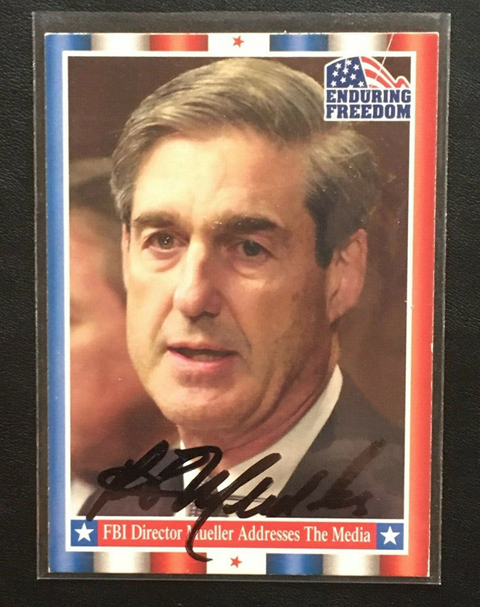 The Item: Robert Mueller autographed 2001 Topps Enduring Freedom trading card (not authenticated; letter from office)