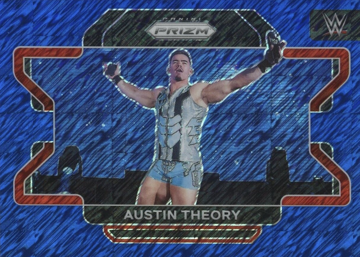 The Item: Austin Theory 2022 Panini Prizm WWE Blue Shimmer Prizm (/10)