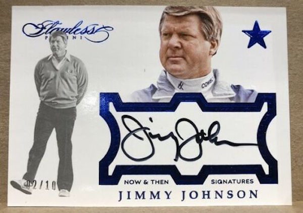 The Item: Jimmy Johnson 2016 Panini Flawless Now & Then Signatures Sapphire autograph (/10)