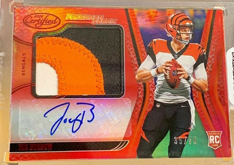 The Item: Joe Burrow 2020 Panini Certified Red Freshman Fabric RPA (/75)