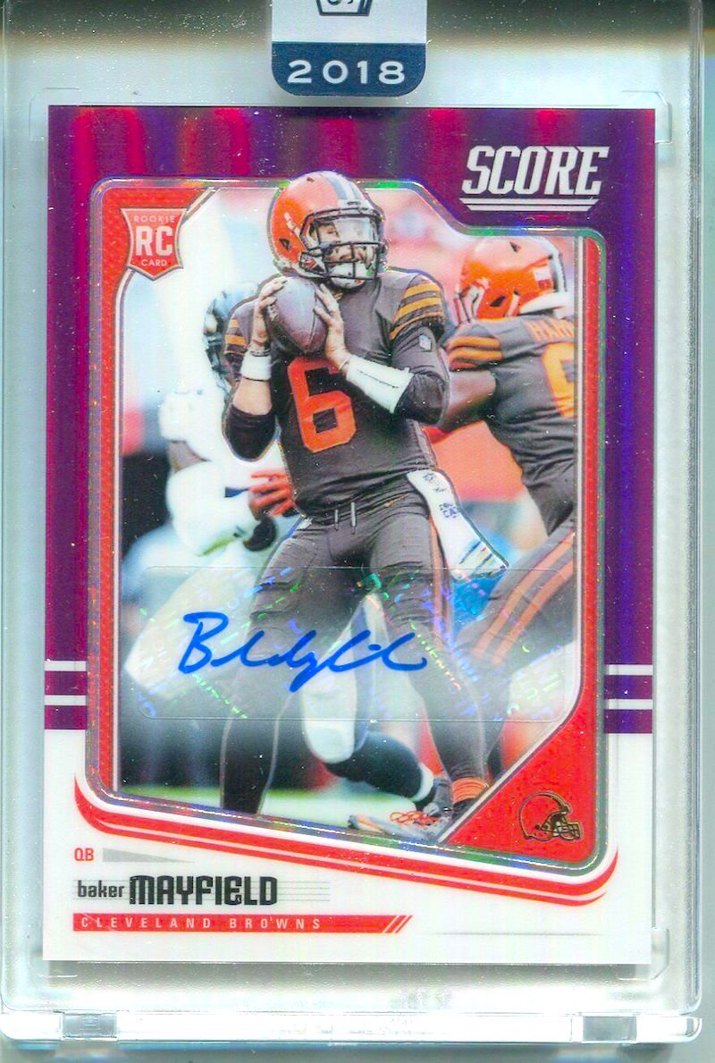 The Item: Baker Mayfield 2018 Panini Playoff Honors Score Optic Purple Autograph RC (/9)
