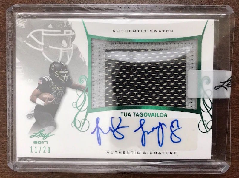 The Item: Tua Tagovailoa 2017 Leaf U.S. Army All-American patch auto card (/25)