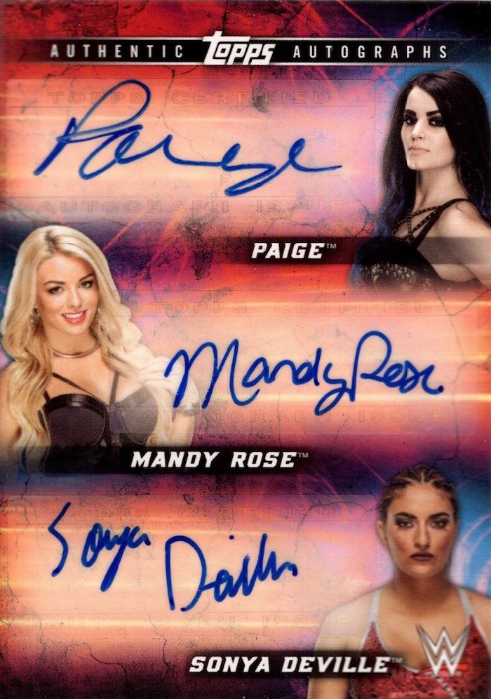 The Item: Paige, Mandy Rose & Sonya DeVille 2018 Topps WWE Then Now Forever Triple Auto (/6)