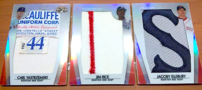 The Item: Carl Yastrzemski, Jim Rice & Jacoby Ellsbury 2012 Topps Triple Threads 1/1 patch booklet