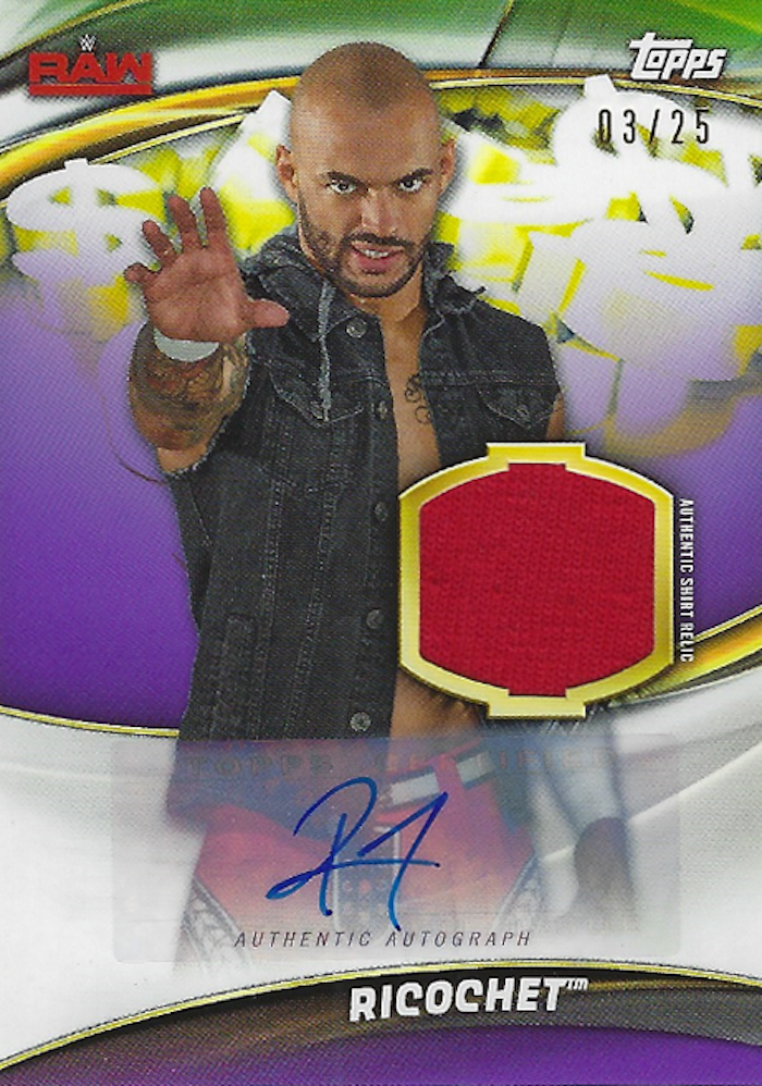 The Item: Ricochet 2019 Topps WWE Money in The Bank Relic Autograph (/25)