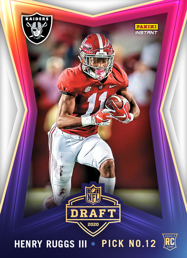 Alabama had four players go in the first 14 picks and this guy might not have been atop most peoples' minds when it comes to cards. Even if he does nothing (that won't happen), he'll always be the answer to the trivia question "Who was the first Las Vegas Raiders draft pick?" and his college numbers will always have some people (Buzz among them) picking them up based on past successes. He was the fastest guy at the NFL Combine with a 4.27 40-yard dash. Fun stat from the past? He had just 98 catches in his career but 24 were for TDs. Now imagine if he hadn't been sharing the field with another receiver who went in the first round. (Just saying.) People love to latch onto Raiders players, too, but many haven't really paid off. Is he the one?